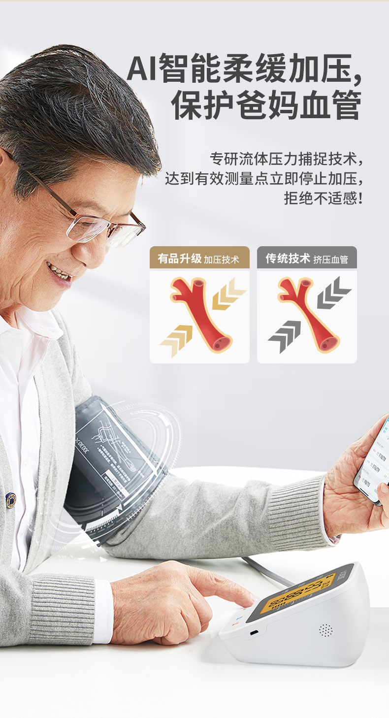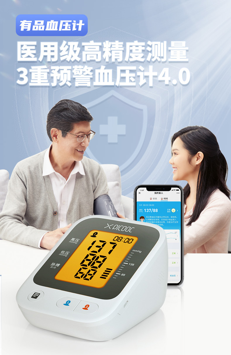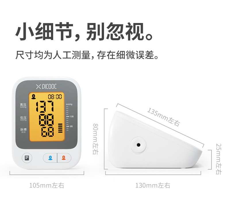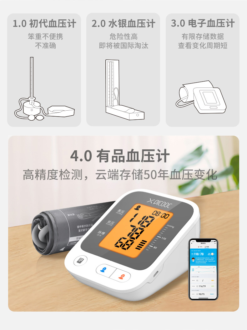 天猫picooc有品旗舰店,第一款149元,可领100元优惠券,实付49元到手,基础语音、无蓝牙功能。血压是人体非常重要的一个指标,熬夜,工作压力大以及中老年人,经常检测血压很有必要。