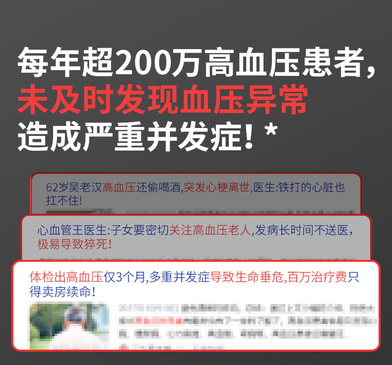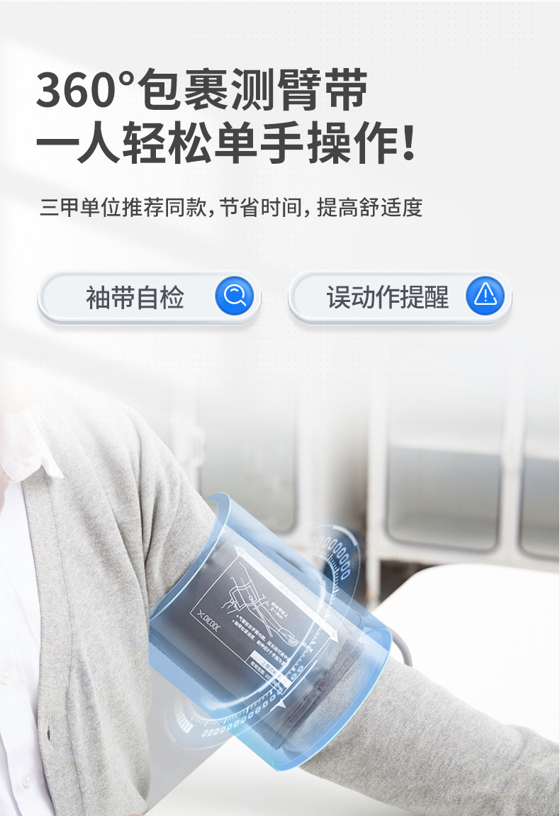 这款血压仪是医用级,测量高精准,智能充压自动测量,免脱测量,使用更方便。内置升级核心传感器,可同时测量血压、脉搏,可分开双人测量。