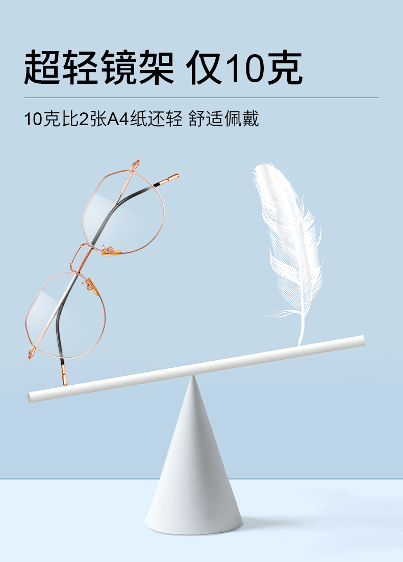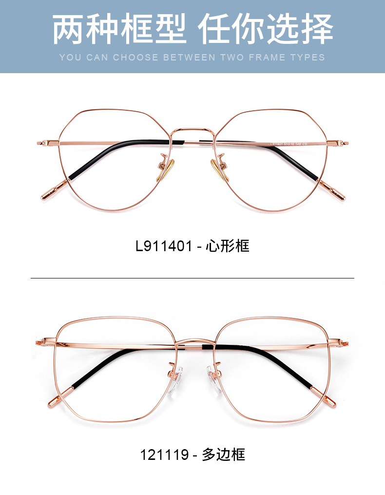 这款乐申 防蓝光平光镜,镜架钛合金材质,超轻仅9g,佩戴舒适不压鼻梁。1.56的防蓝光镜片,有效防蓝光,防辐射,1.60的镜片比它更薄一些,适合高度数的朋友。