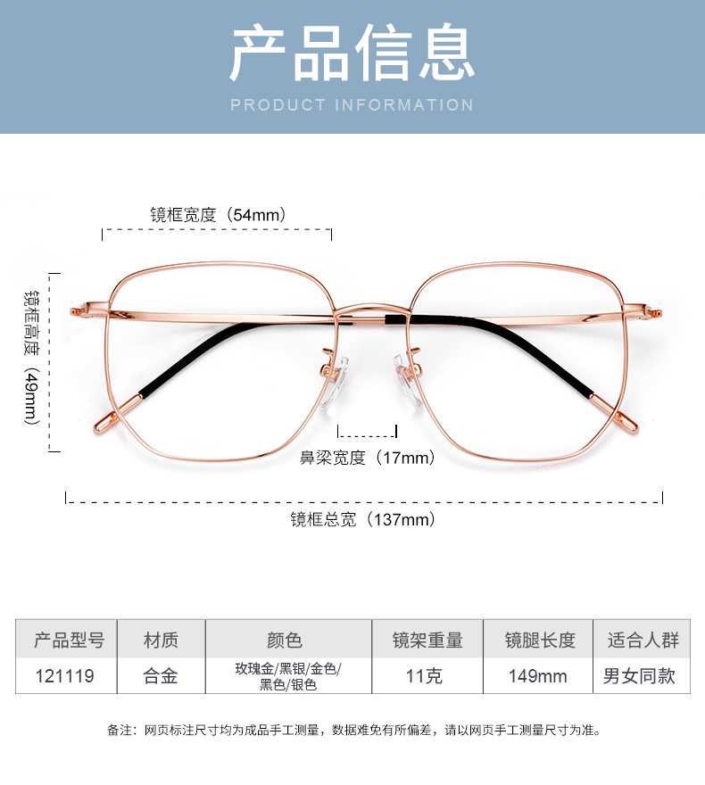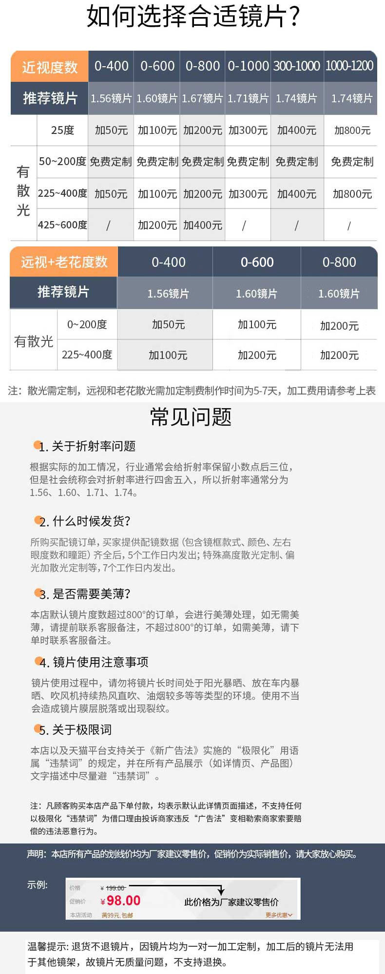 PS:如需配近视镜,下单时根据自己的度数选择镜片,然后在备注里,写上自己的验光数据和需要镜框。记着自己的配镜数据还是很有必要的,不清楚的朋友可以去眼科或眼镜店检测,很便宜的,要记下来详细数据,尤其是散光的朋友,要记得散光度数和轴位。