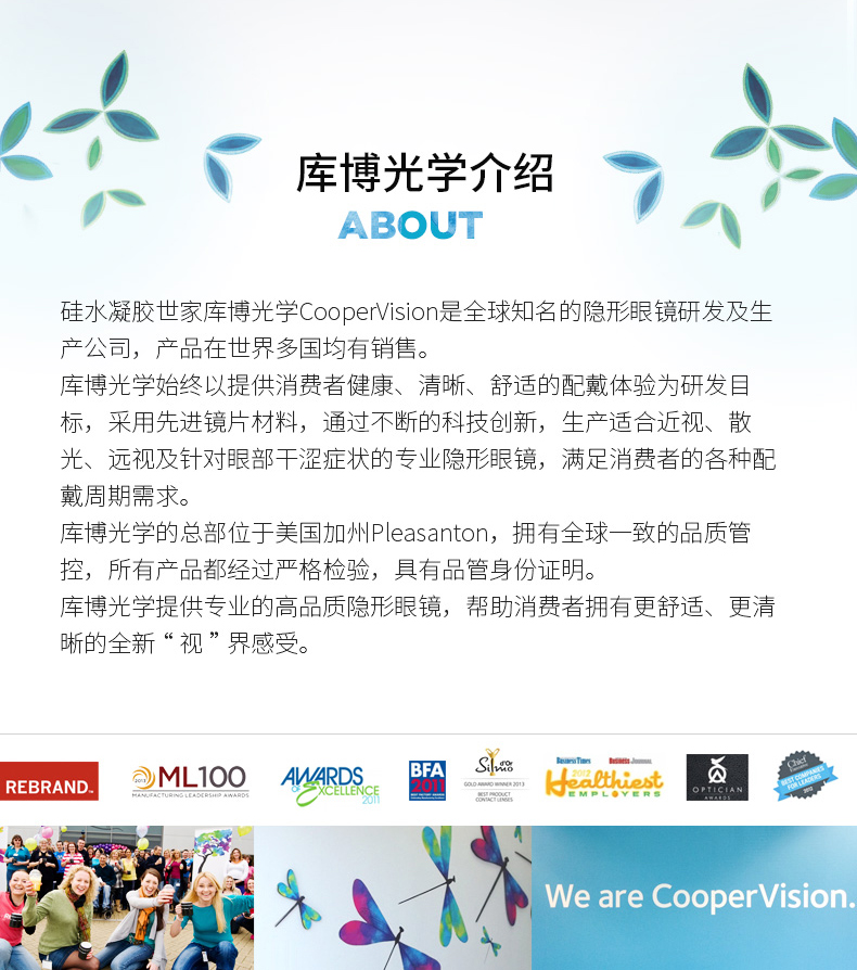 库博光学(Martin H.Smith)作为库博集团的一个业务分支,是全球领先的软性隐形眼镜制造商之一,致力于为隐形眼镜配戴者制作优质镜片,带来视力保健的清新感受。1958年库博集团的前身Martin H.Smith Co.公司成立,1961年,Martin H.Smith Co.并入Delaware成立Cooper Tinsley Laboratories,Inc;1979年纽约交易所上市,并且在1979年~1983年分别获得了FDA的多项批准;2005年,库博光学成为第三大全球隐形眼镜制造商;于2012年7月,正式更在中国销售。