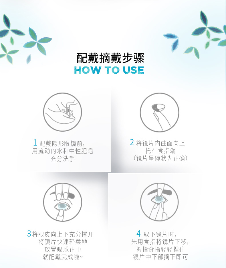低镜片设计,减少眨眼间与镜片的摩擦,有效降低异物感,增加瞬目的舒适度;镜片边缘采用干式膜铸工艺,使表面更加光滑,成形性好,更易于操作,对初期佩戴者尤其方便。