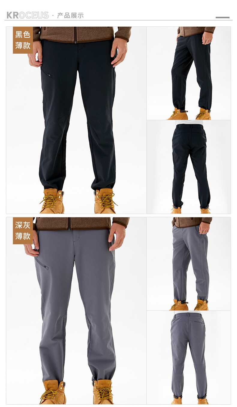 在款式和细节上,单从款式上看不出来是户外徒步裤,除了日常休闲,商务通勤也能穿。膝盖部分是3D立体剪裁,是按人体工程曲线裁剪打版制成,给膝盖在弯曲活动时留下了充足的空间,上身非常合体舒适。腰头两侧有橡筋带裤袢,无论是单穿或用腰带都行。