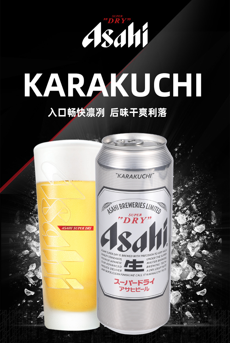 朝日啤酒株式会社成立于1889年,是日本有名的啤酒制造商之一,朝日啤酒出自日本酿造大师之手,从日本清酒干爽口感中获得启发而诞生,入口瞬间的畅快凛冽,以及后味干爽利落的口感,称其为“辛口感”。自1987年推出“Asahi Super Dry”以来,到如今人气依然并受到世界各地消费者的喜爱。