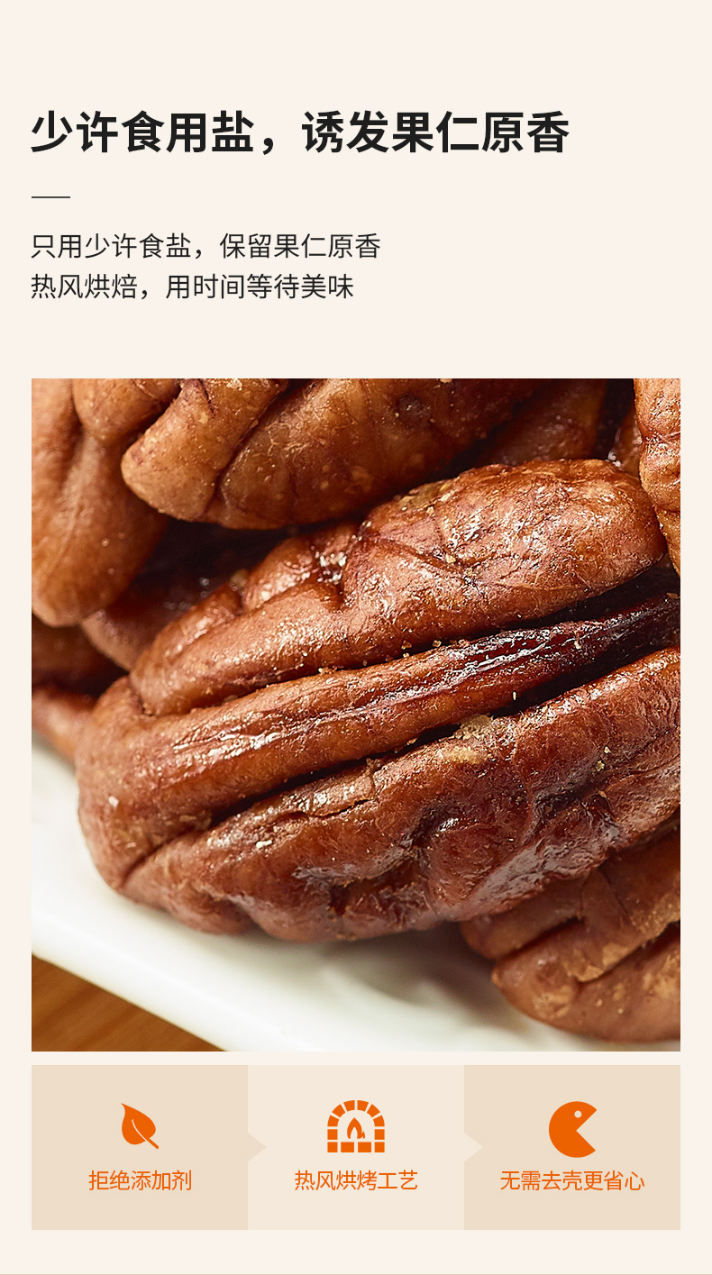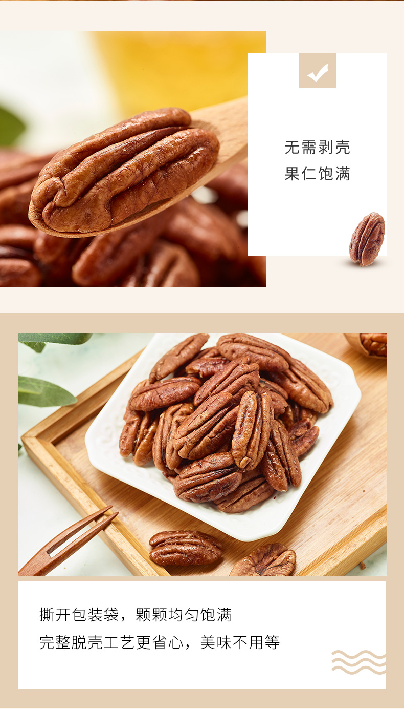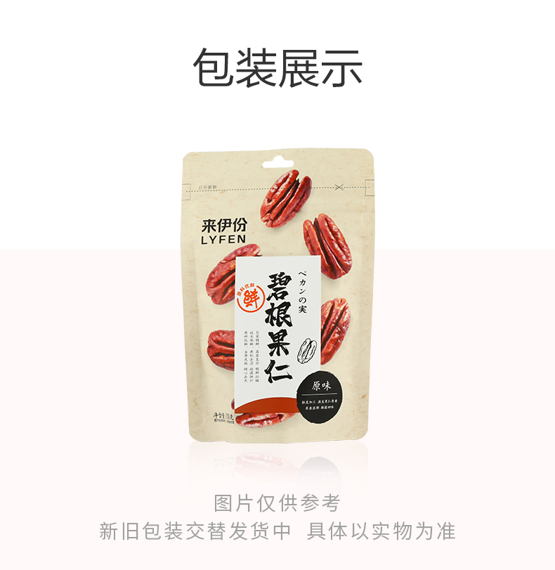 来伊份 碧根果仁 甄选优质大果,颗颗饱满,热风烘烤工艺,拒绝添加剂,少许食盐诱发果仁香气,无壳免剥,开袋即食非常方便。