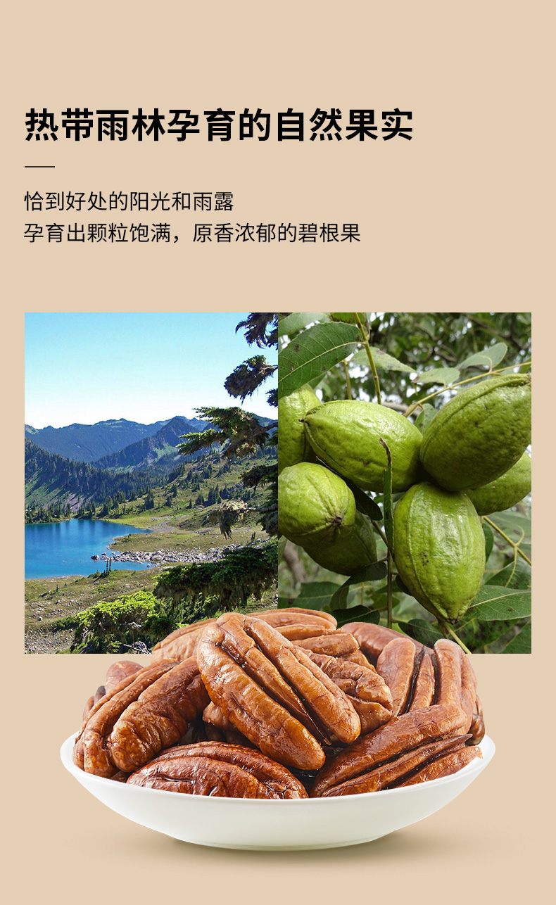 碧根果是美国山核桃的果实,又名“长寿果”。营养极为丰富,除含有40—50%的油脂外,还含有蛋白质、胡萝卜素、粗纤维、钙、磷、铁及维生素c、b1、b2、e等多种营养,是非常良好的保健食品。
