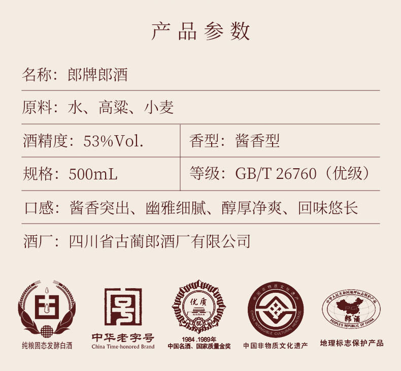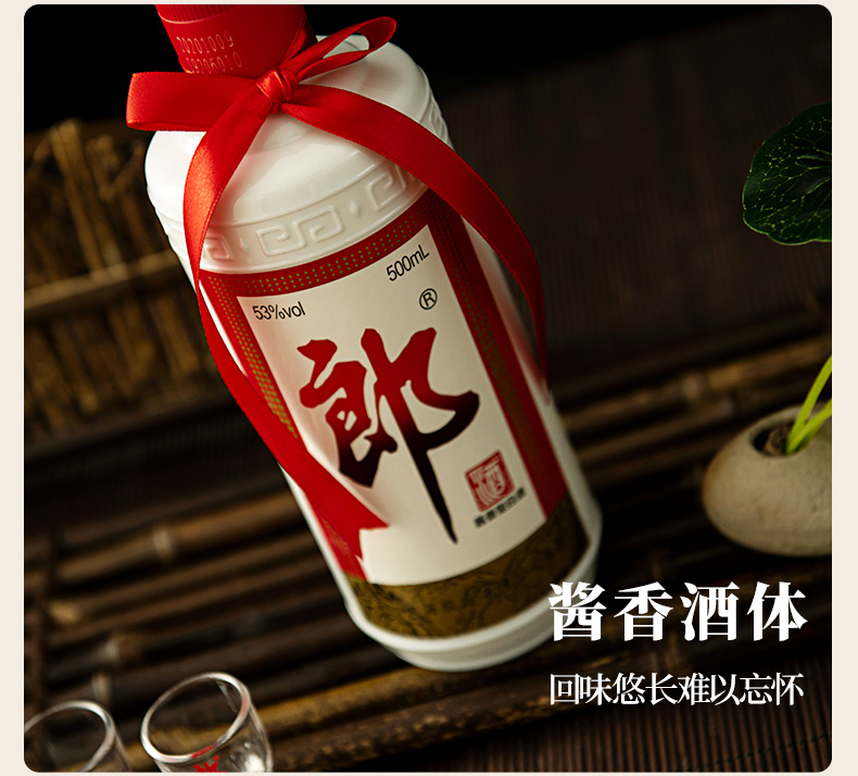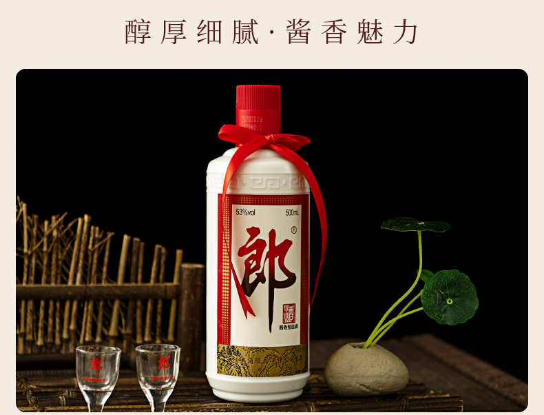 郎牌郎酒是郎酒股份有限公司旗下一款经典酱香型白酒,不仅继承了郎酒的经典的包装,让郎酒的 经典包装重现江湖,更加传承了郎酒的传世酱香口感:酱香突出、优雅细腻、醇厚净爽、回味悠长。