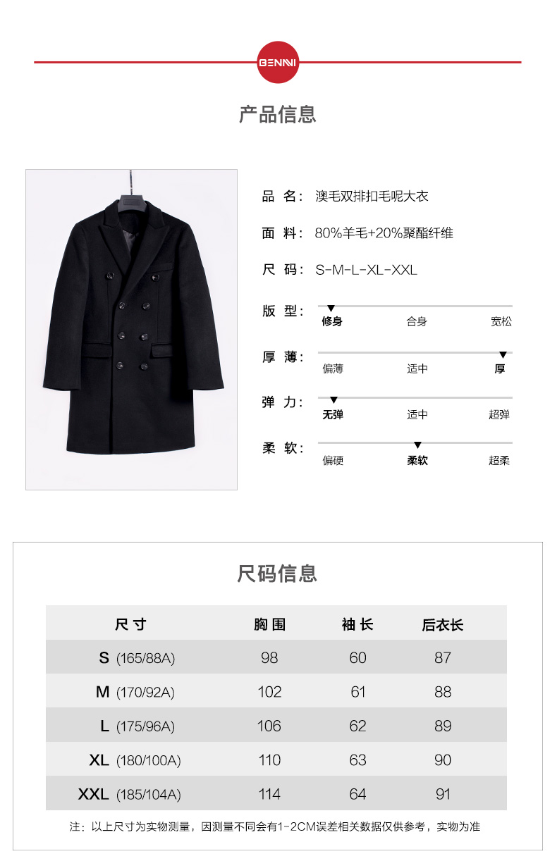 用到西装类商品的顶尖“归、拔”工艺,保证了大衣挺括,却不僵硬。款式上更接近风衣的设计,略修身的中长款版型设计,拉长身形、上身显瘦显高,像西服一样的戗驳领,双排扣,搭配高领衫一起穿,造型感十足,商务/休闲场合都合适。