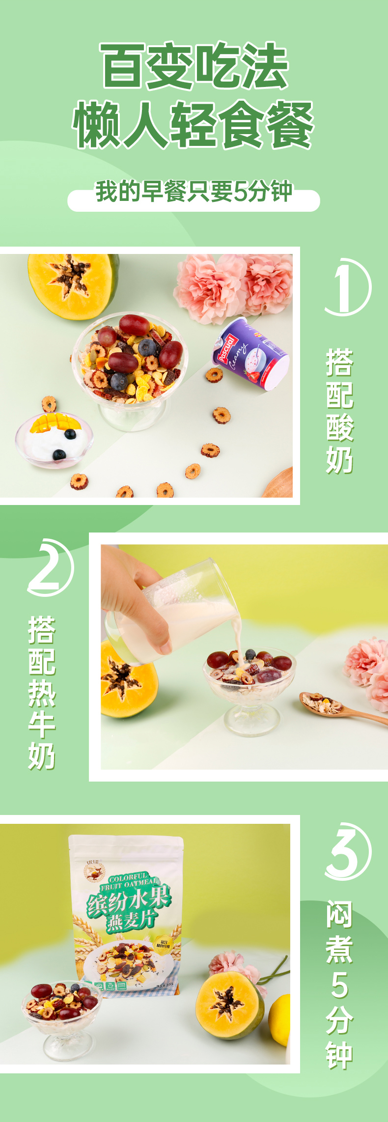 这款优佳 即食冲饮 缤纷水果燕麦片,水果谷物搭配配方,使用非膨化麦片为主料,富含膳食纤维易饱腹,搭配蔓越莓、木瓜丁、红提、芒果丁、南瓜籽仁、玉米片、红枣干、枸杞、黑芝麻,不额外添加蔗糖,营养均衡,不含人工添加剂,适合健身代餐。
