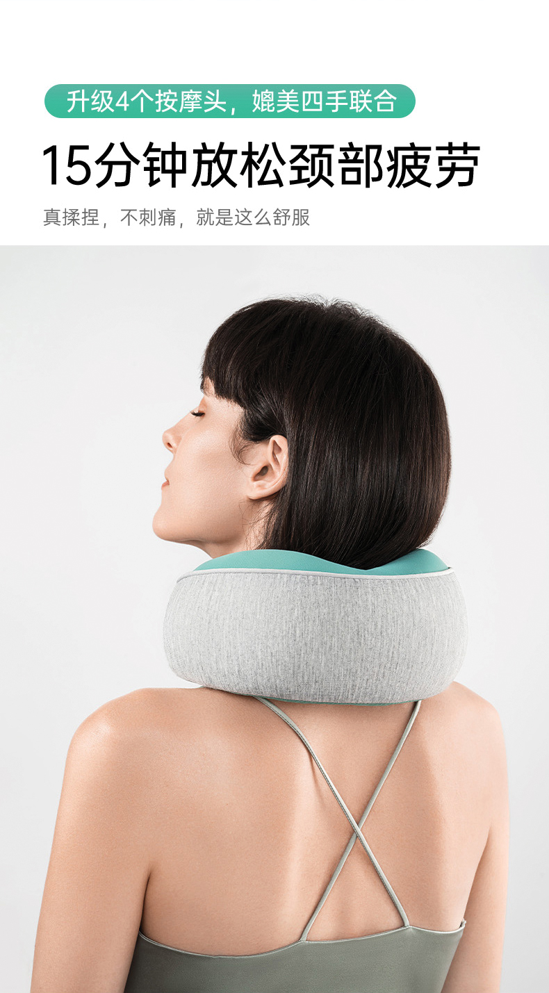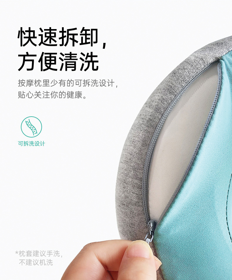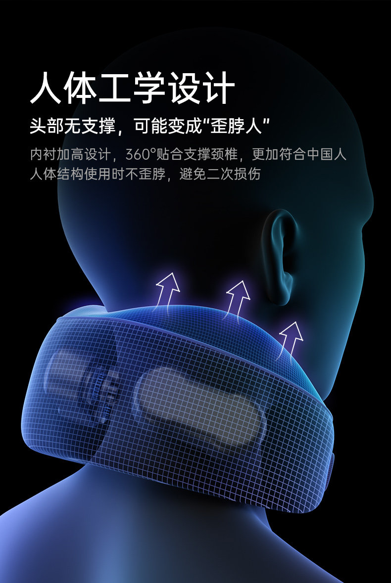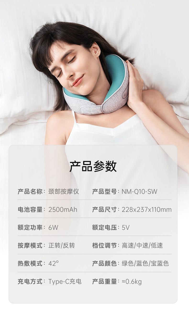 有快、中、慢三档按摩模式,在配合远红外技术、恒温热敷,有助放松颈部肌肉,舒适解乏。三档隐形磁吸扣调节,佩戴舒适。内置2500mAh容量电池,每次15分钟满电可用8天,枕套纯棉亲肤面料可拆卸打理方便。