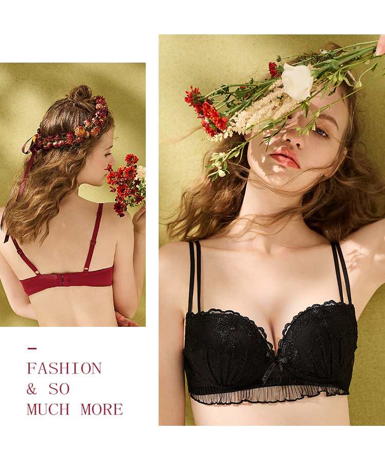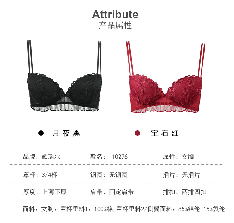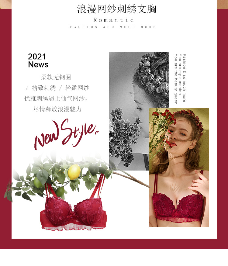 柔软无钢圈,精致的刺绣搭配轻盈的网纱,尽情释放浪漫魅力,融合褶皱设计,打造饱满胸型,轻如无物,小胸不空杯,大胸轻盈显瘦,花边剪裁领券链接点此