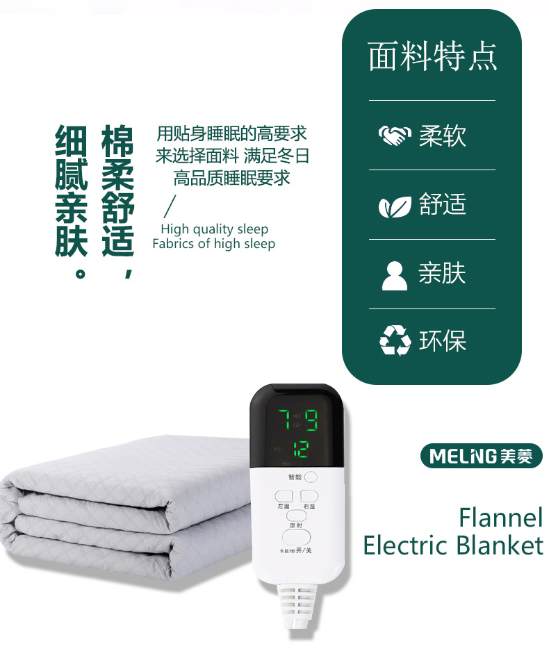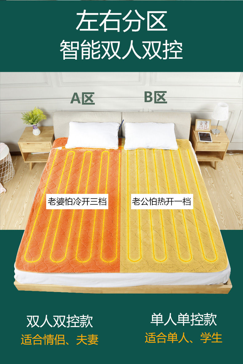 智能恒温降档 防潮防湿,不干燥不上火。韩国点焊精梳棉面料,此外还有双面压花棉质面料,多尺寸、智能降档控温遥控可选。