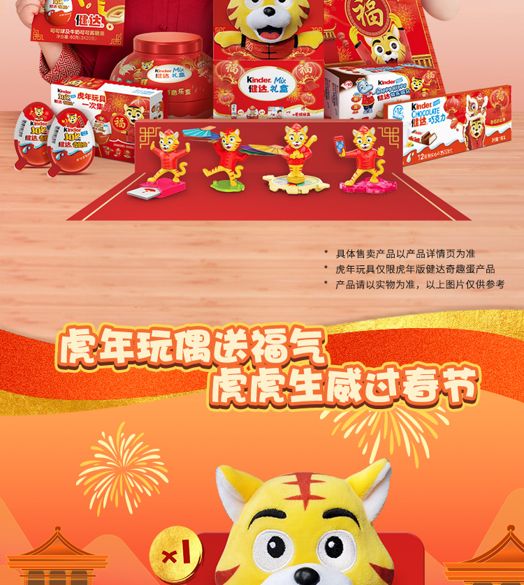 健达缤纷乐是由意大利费列罗公司生产的牛奶榛果威化巧克力。深受小朋友喜爱。这款虎年mix礼盒,除了好吃的,还有一个虎年毛绒玩具。过年送礼蛮合适。