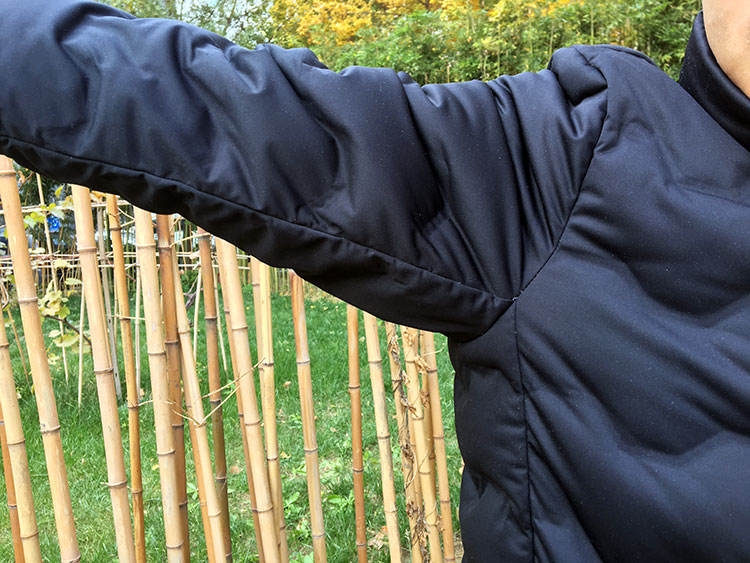 ▲做扩胸运动,带弹力,不板,也能看出羽绒的蓬松度很好