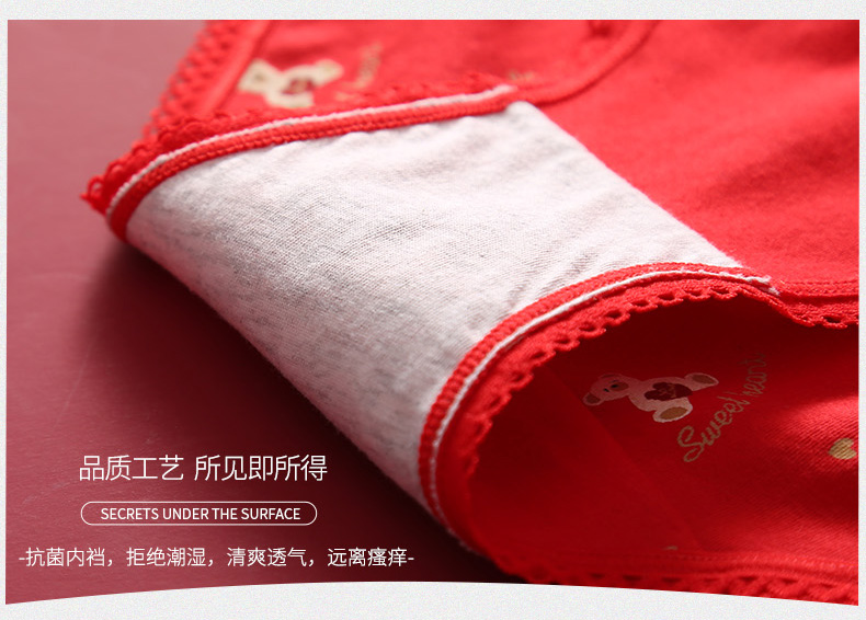 这款芬腾 大红本命年卡通内裤 ,棉质面料,轻软触感,不易褪色;浅灰双层抑菌内裆,全棉抗菌内裆,贴身防护,舒适抑菌,远离异味、瘙痒困扰。可大红色设计,本命年必备。