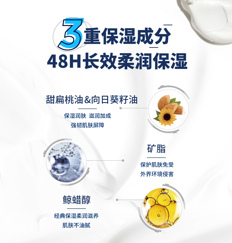富含强效而温和的水合因子,保湿效果迅速而持久,保持肌肤持久润泽。质地非常温和,无刺激,用后皮肤柔软而富有弹性,无香。