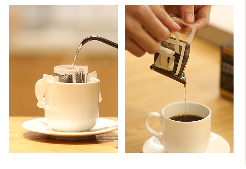 挂耳咖啡是用研磨好的咖啡粉放置在用无纺布制作的口袋里封装好,饮用的时候需要挂在杯口用开水冲泡就可以饮用,咖啡粉就可以直接扔掉了,糖和奶需要自己添加。这个咖啡是纯天然的,没加任何的添加剂。只要身边有热水水源,有杯子,即可方便享用,特别适合居家、办公室和旅行热人使用。