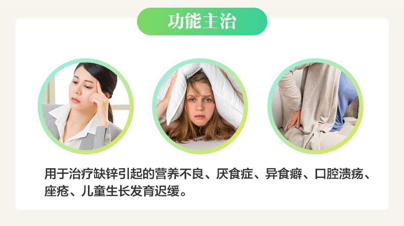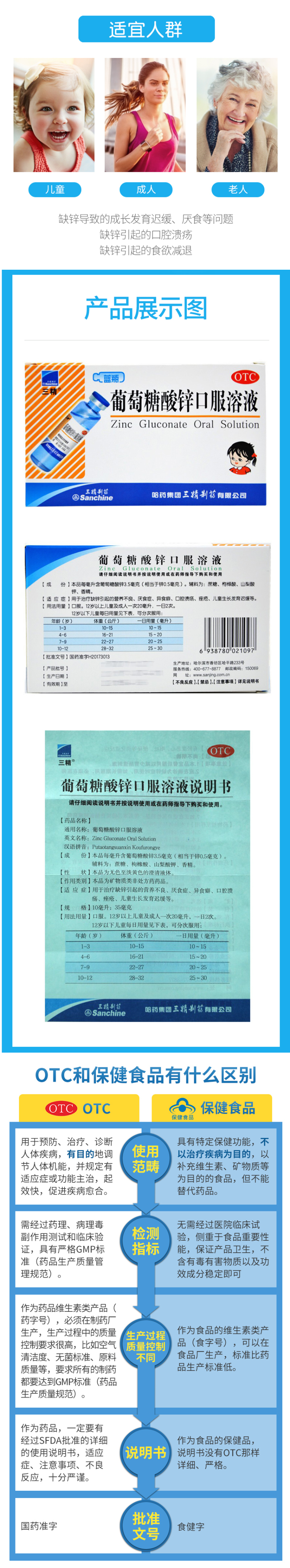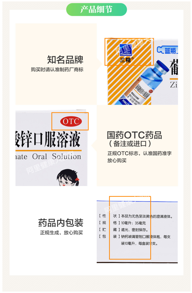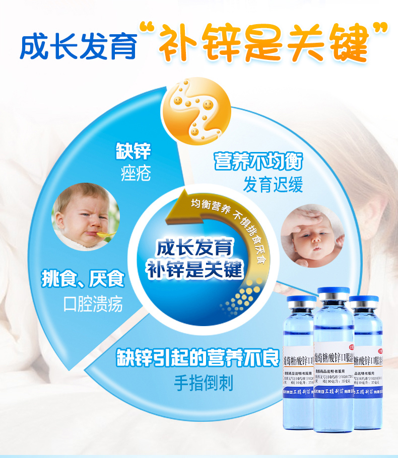 老牌的葡萄糖酸锌口服液,用于治疗缺锌引起的营养不良、厌食症、异食癖、口腔溃疡、痤疮、儿童生长发育迟缓等。