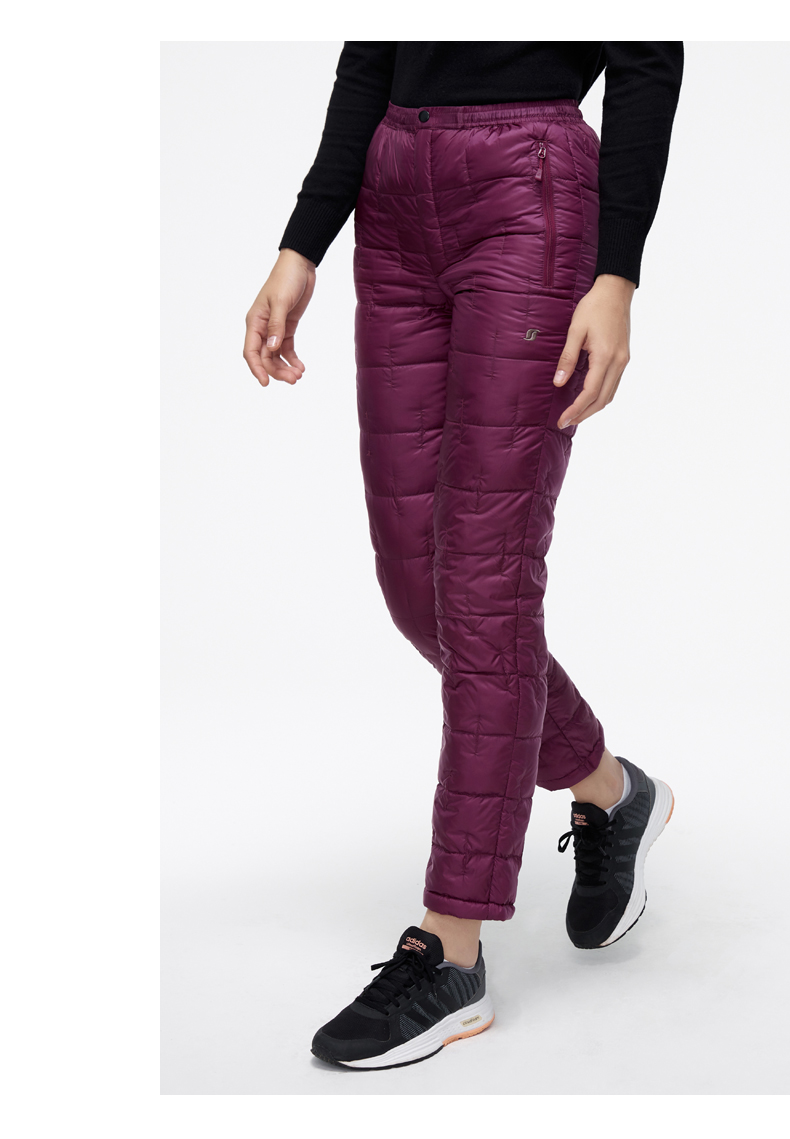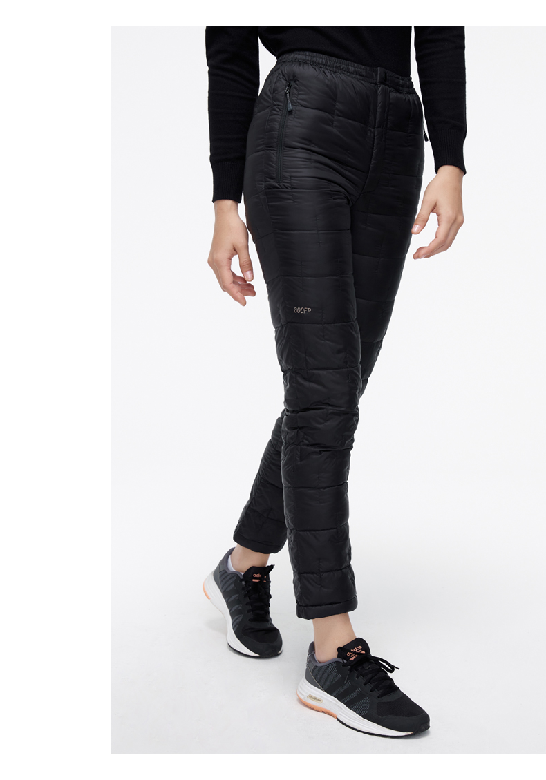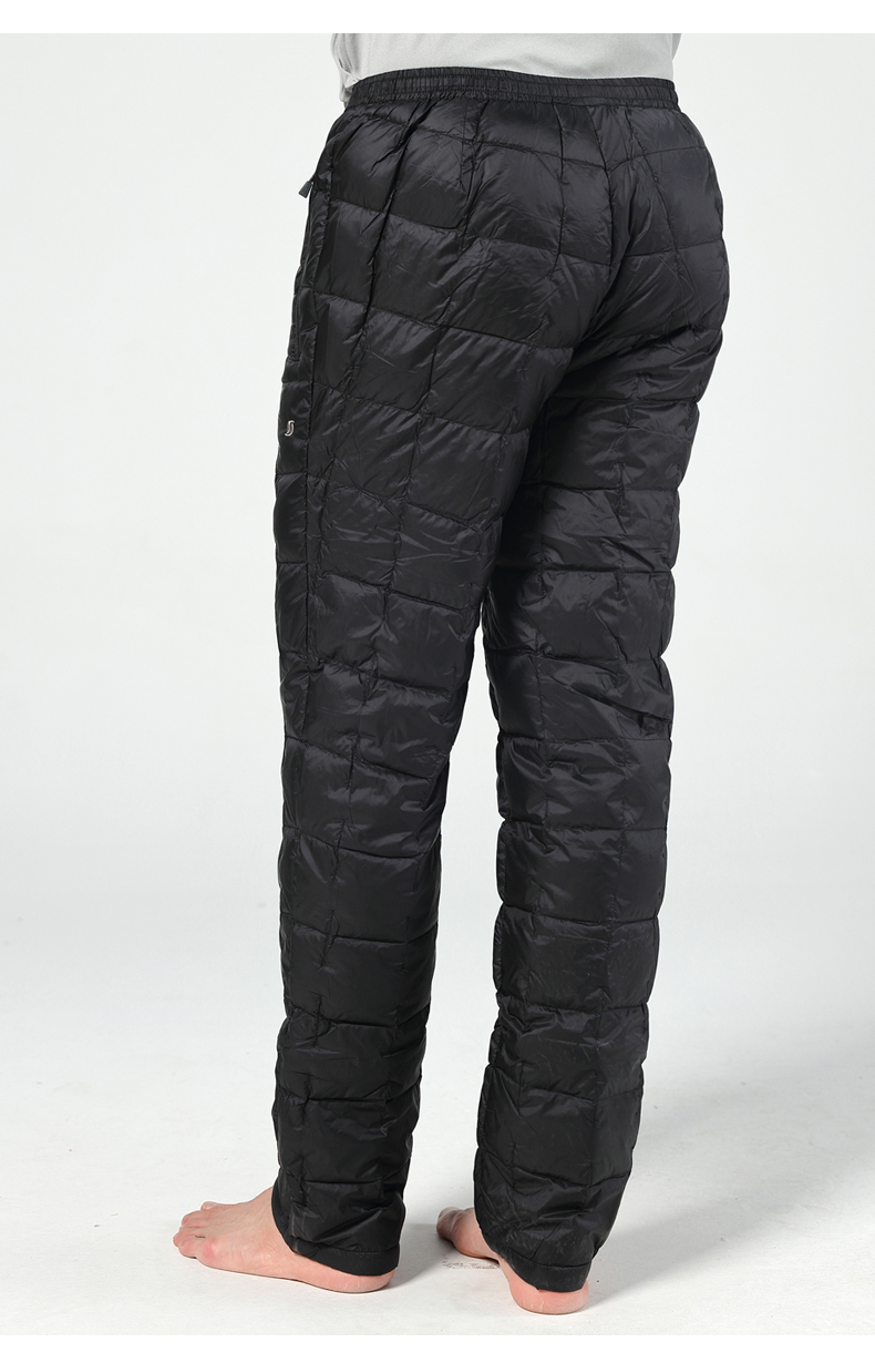 这款君羽男女羽绒裤,外层是日本东丽20D高密尼龙面料,防风防泼水,内里填充800蓬90%鹅绒,常规款充绒量55克,厚款充绒量73克,可以穿的轻便又暖和。