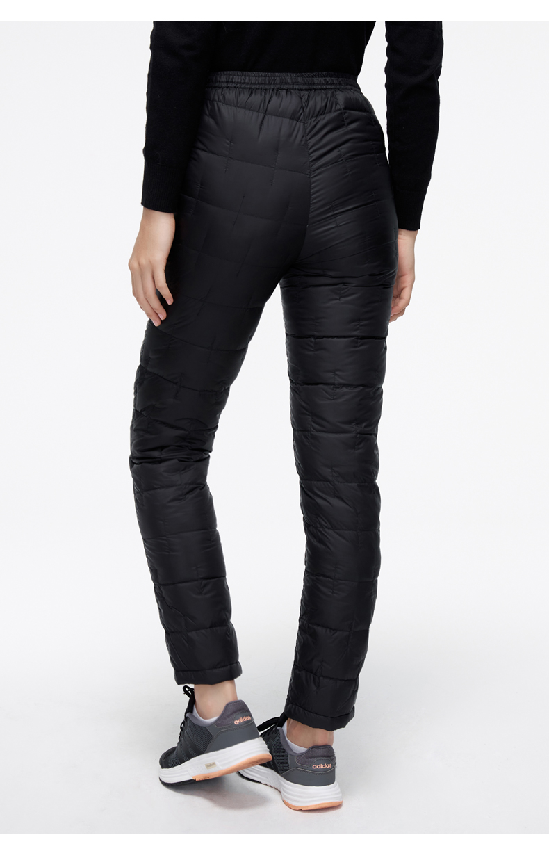 人的上身需要穿的很暖和,可腿因为走路活动身体发热,不需要像上身穿那么多,并且膝盖位置穿多了,弯腿会非常不舒适,所以轻羽绒级的充绒量,对大腿来说保暖就够了。