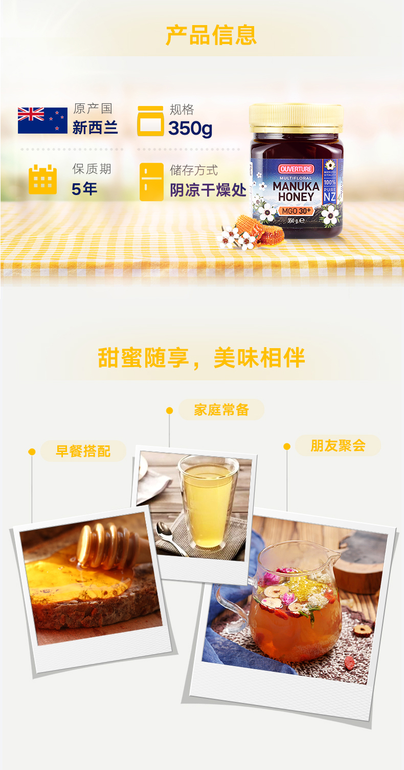 新西兰原装进口麦卢卡蜂蜜,成分类似有一定含量的苯酚,具有活性稳定的抗菌能力,不像一般蜂蜜的抗菌成分进入人体后易被热量及酶分解。正因为如此,麦卢卡蜂蜜不仅具有一般的保健功效,还能有效改善胃肠疾病如:肠胃炎、消化不良和腹泻、十二指肠溃疡,以及改善皮肤创伤方面的顽疾。