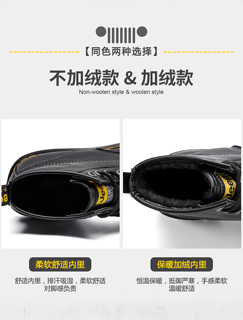 天猫jeep吉普佩迟专卖店,1月24日~2月8日 春节不打烊,高帮款¥598元 促销价,-50元优惠券,=548元 到手,有单层内里和加绒内里可选。