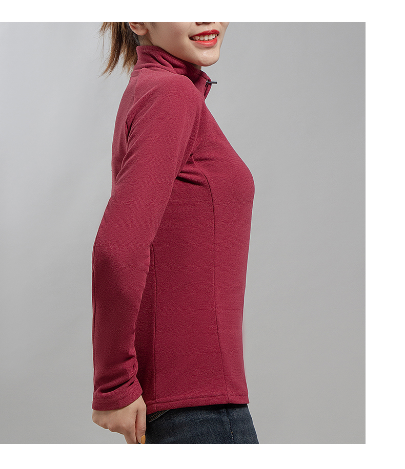 在款式和细节上,男女均修身版型,半开禁拉链立领设计,拉链顶端有护颚设计,不会刮伤脖颈。外层是纹理质感面料,避免了抓绒起球的问题。袖口和下摆采用双车线工艺,不易开线,无论是直接单穿或者作为中间保暖层都没问题。