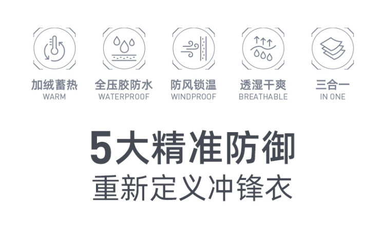 运动户外三合一冲锋衣加厚款,虾壳仿生冲锋衣,一件顶八件,全天候防护,无惧风雨,太空聚热科技,好品质,懂的都懂