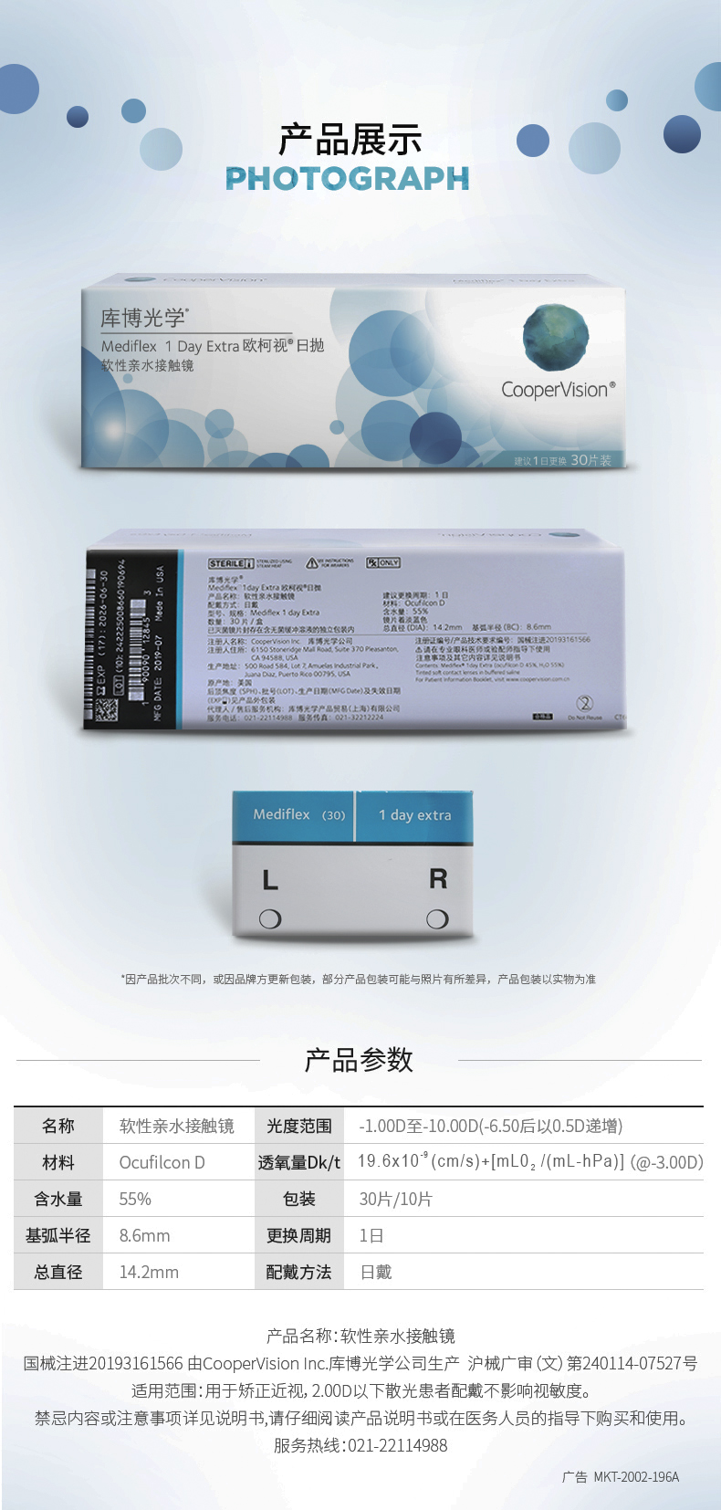 这款隐形眼镜中心厚度只有0.07mm,含水量高达52%,高效缩水,去干涩;添加紫外线吸收剂,能够有效阻挡70%的UVA以及96%的UVB,时刻保护眼睛,更周全;