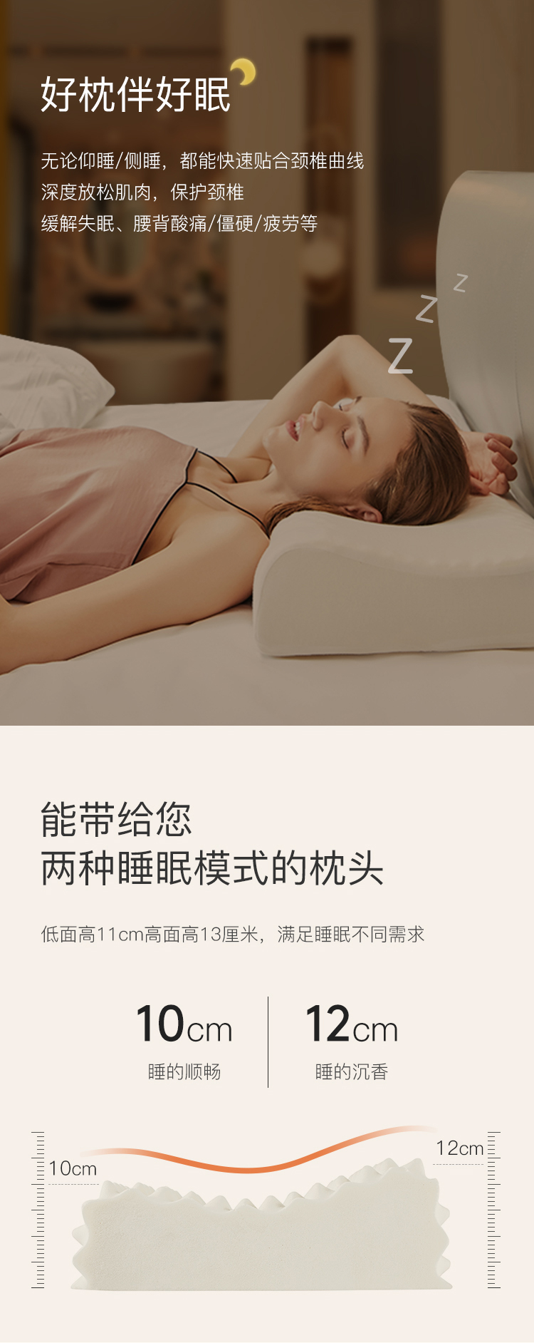 造型科学设计,无论侧睡、仰睡都能保护颈椎,缓解失眠、腰酸背痛、疲劳等症状。45D密度,软硬适中,强力支撑,满足不同睡眠需求。且拥有抑菌除螨的效果,使用更为健康安全。