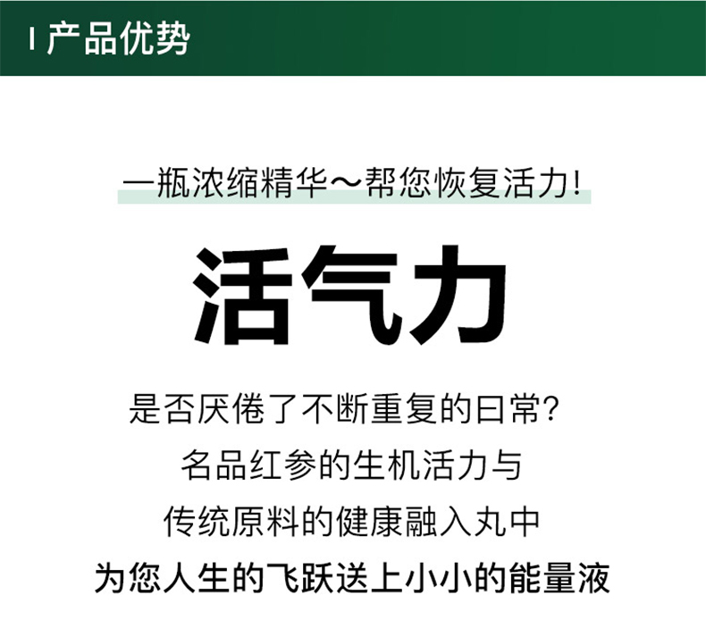 浓缩版口服液,每支20ml便携服用。营养浓缩,更易吸收,补充活力 改善疲劳,增强免疫力,不含咖啡因。30支礼盒装,过年送礼佳选。