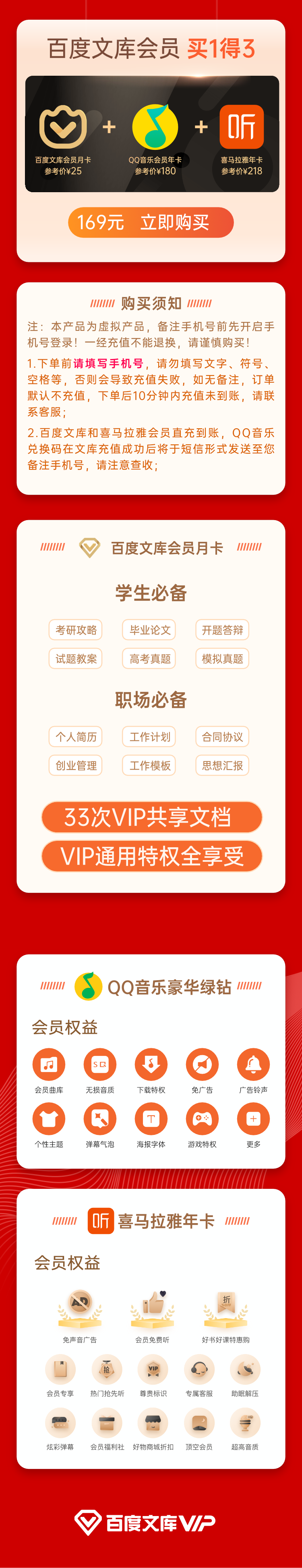 天猫百度文库旗舰店实付169元到手,这款QQ音乐豪华绿钻会员 年卡+喜马拉雅年卡+百度文库会员 月卡的组合,平常单独开一个QQ音乐豪华绿钻会员年卡需要168元,还是很划算的。