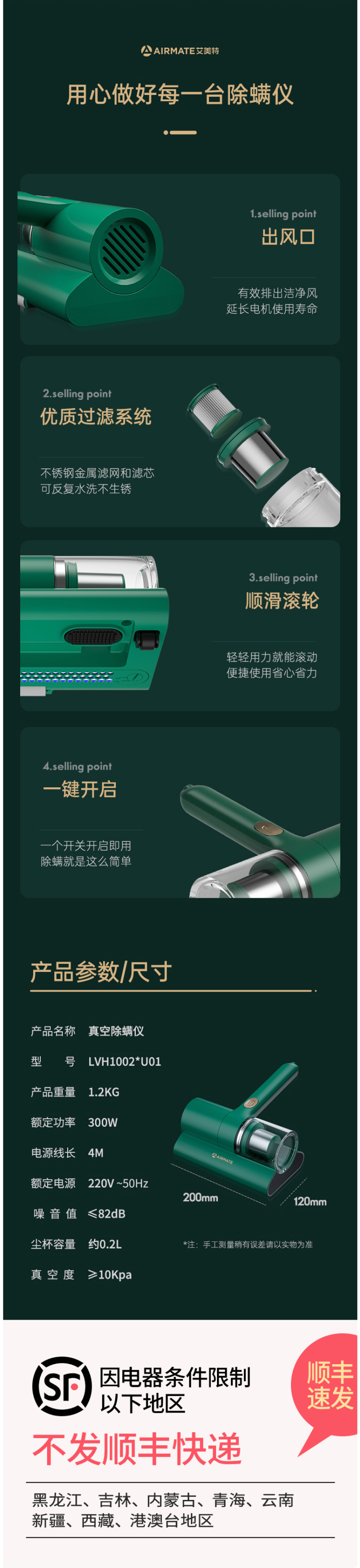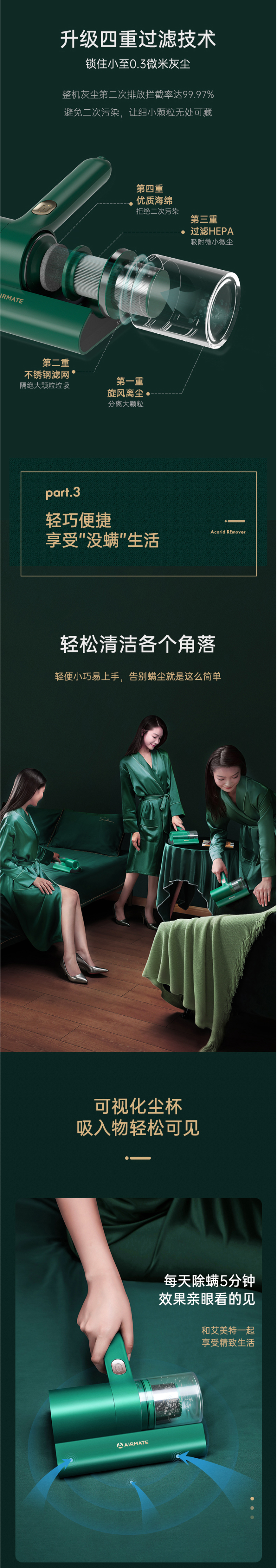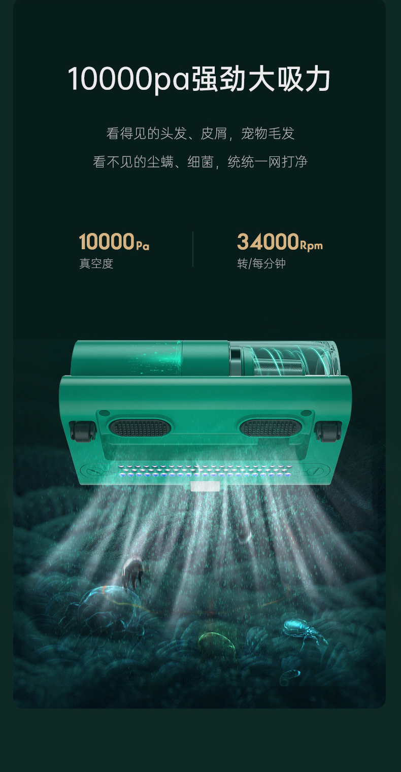 宽吸口的无刷吸头设计,不仅能减少毛发缠绕,还能大大提高吸收的效率;0.2L可视化透明尘杯,除螨效果清晰可见,耐磨可水洗;整重1.2kg的轻量化机身,女性使用时轻松省力。