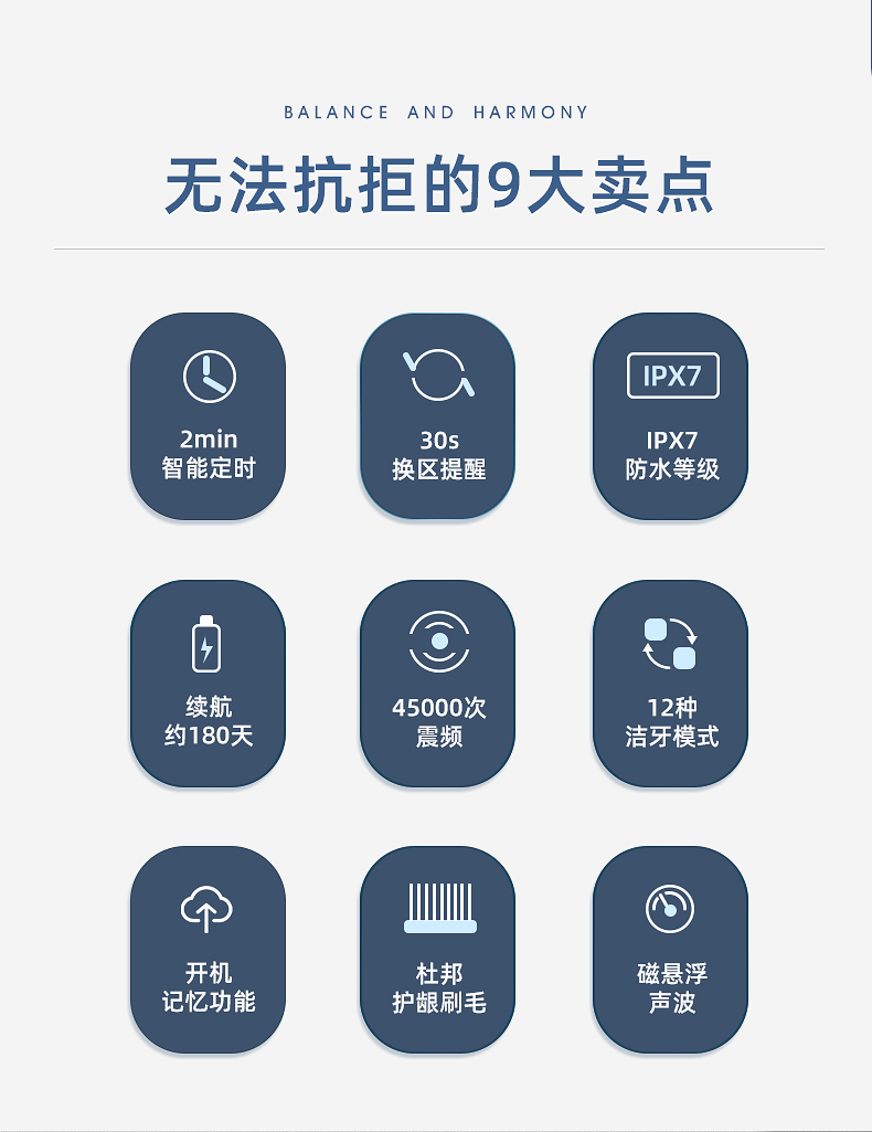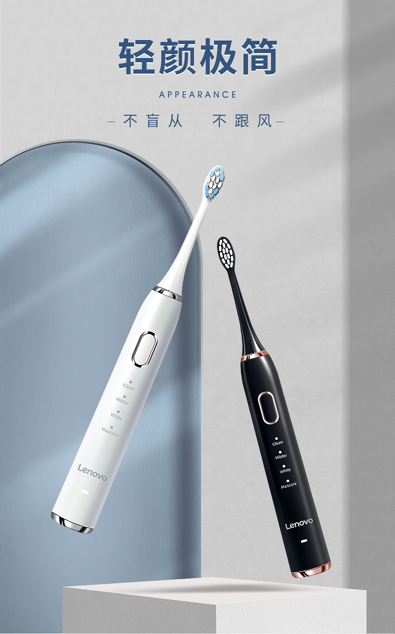 联想电动牙刷,区别传统震动,采用磁悬浮声波马达,45000次/分钟高频声波震动,深入口腔依旧保持强劲动力,有四种模式12档位可选,满足不同口腔需求。