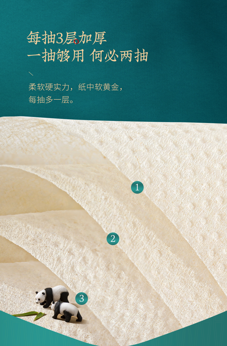 这款抽纸无漂白,无有害添加,抽纸可直接接触食品,内部添加天然提取的竹锟精华,抑菌率高达99%,具有多孔纤维,可以瞬间吸收和蒸发水分,湿水后韧性更强,擦拭后不易松散,干湿两用,卸妆洗脸均可。