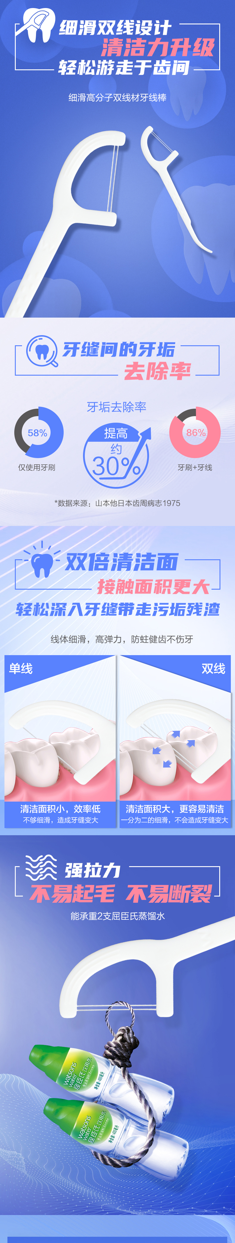 天猫屈臣氏官方旗舰店,1月24日~2月8日 春节不打烊,¥65元 促销价,-24元优惠券,=41元 到手价,细滑深洁双线护理牙线棒,有效清除牙缝残渣,有效防止牙缝表面污渍形成,尾段弹性弯柄,可用作牙签,有助安全地清除牙缝间残渣。