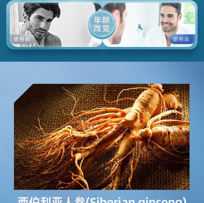 具有抗疲劳、抗应激、免疫支持、中枢神经系统活性和抗抑郁。还能协调细胞防护力、维持细胞免疫功能、调节免疫抑制。特别添加水溶性PABA,呵护男性发量,帮助减少白发产生。