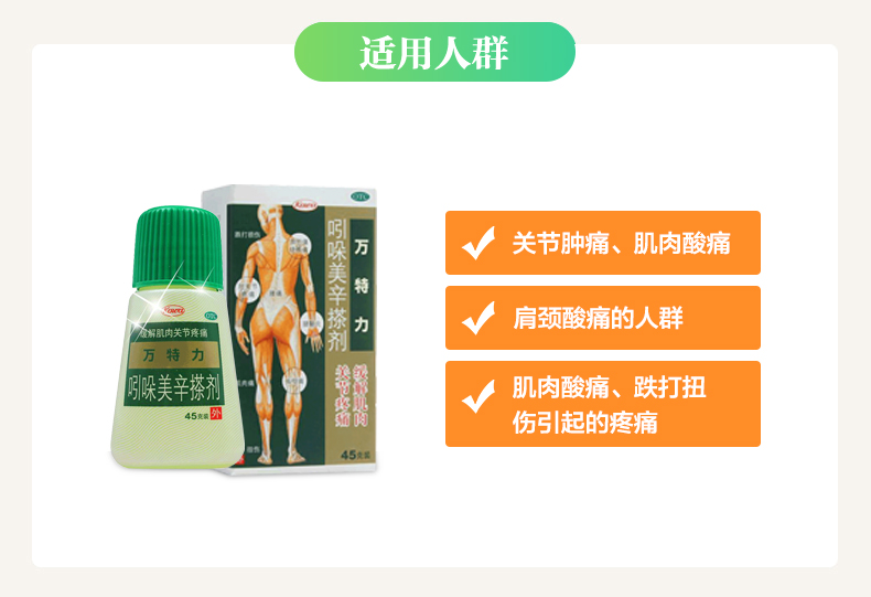 这款药是因为我腱鞘炎买的,涂抹后立竿见影,有明显清凉感,后来发现崴脚、扭伤也都好用,对于肌肉酸痛、关节疼痛和跌打损伤有奇效,适合家中常备。