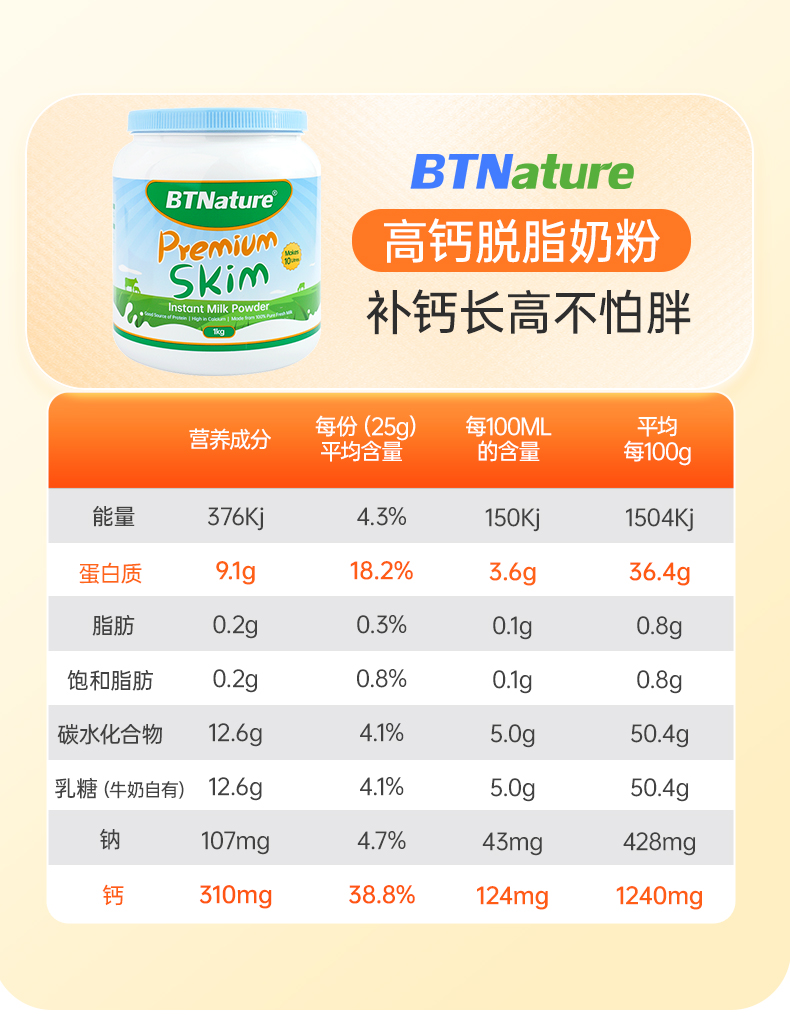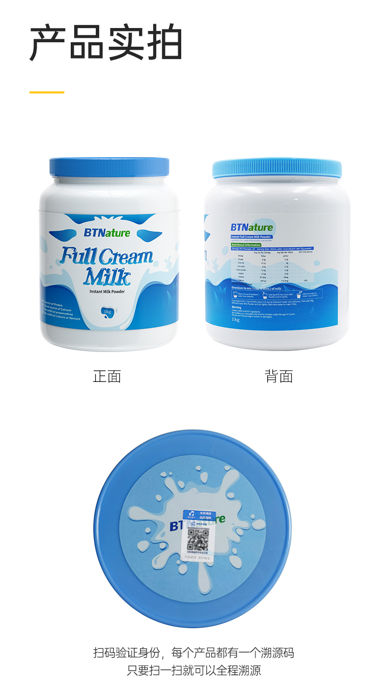 钙含量提升17%,有脱脂和全脂款可选,规格是1kg。