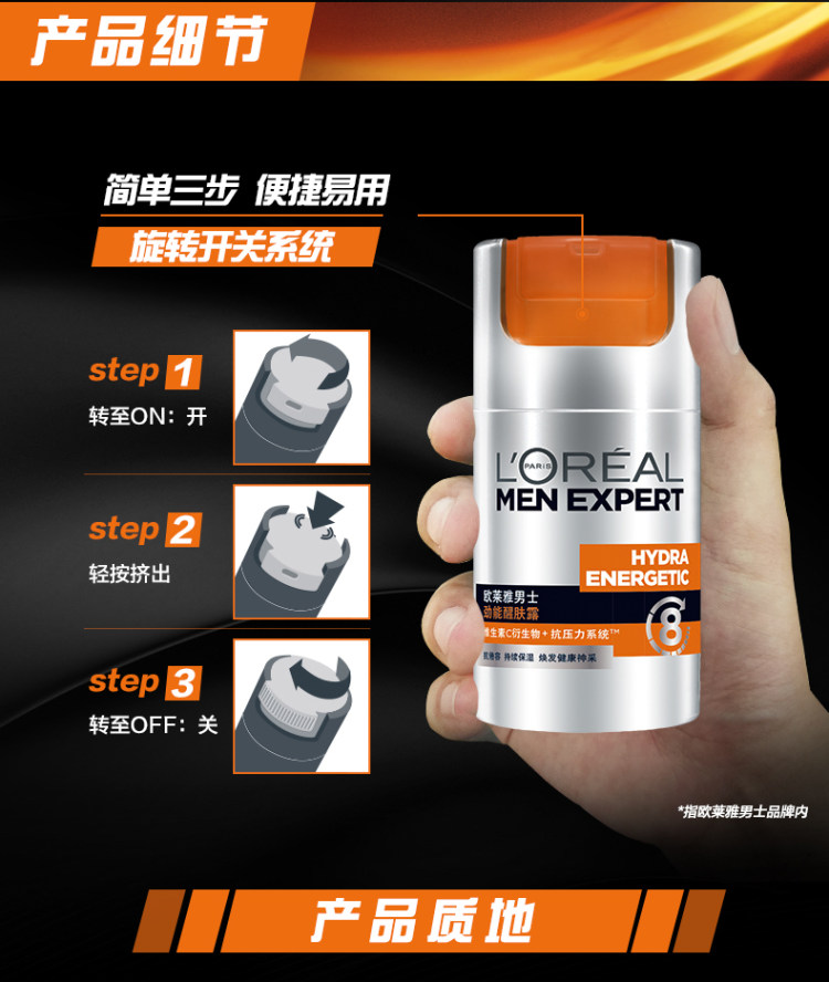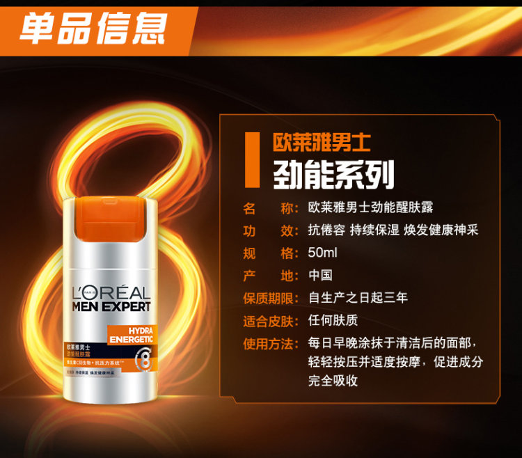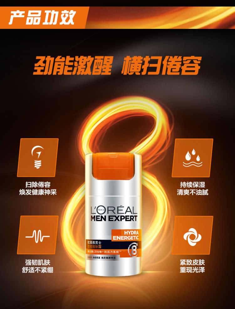 天猫欧莱雅男士官方旗舰店,1月24日~2月8日 春节不打烊,¥99.9元 促销价,-10元优惠券,=89.9元 到手价,下单赠送同款22ml,官方旗舰店发售,男士护肤NO.1品牌,活性防护,富含维生素CG,击退倦容,持续保湿,紧致肌肤,重现光泽,焕发健康神采。