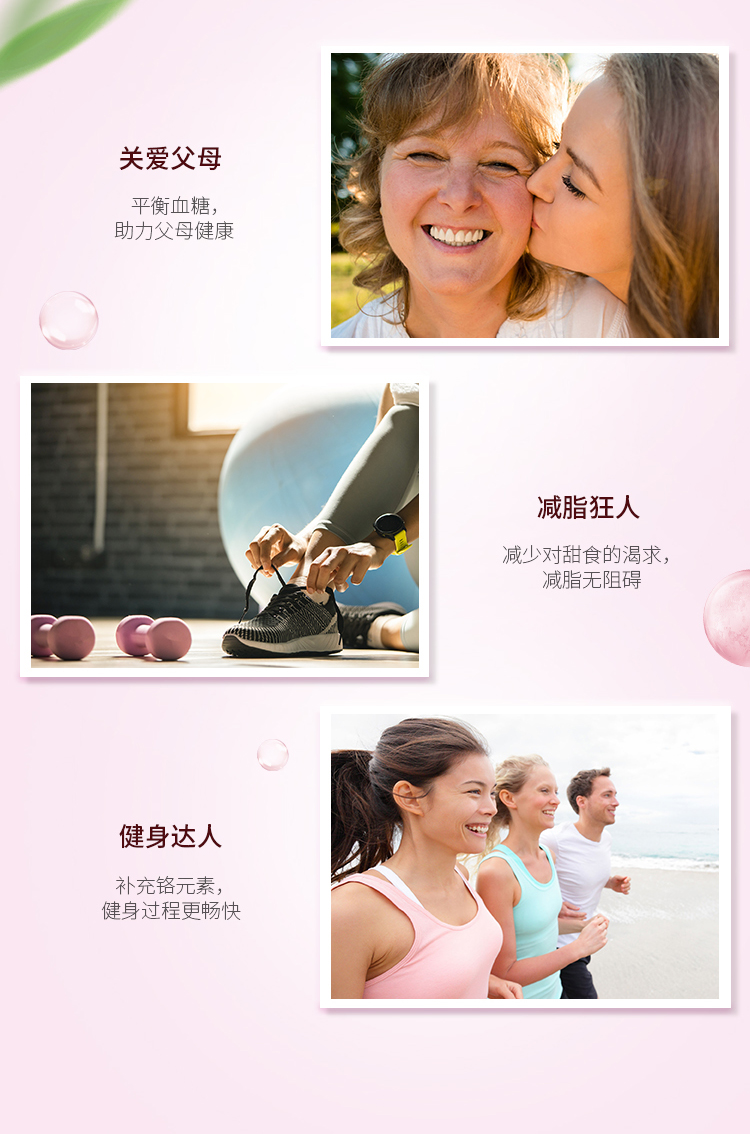 富含天然烟酸铬等微量元素,可以维持自身健康的血糖指标,矿物质铬与锌能促使细胞摄取足够的葡萄糖并作为原料提供给身体使用,其全面配方能够有效地维持健康的心血管功能及胆固醇水平。