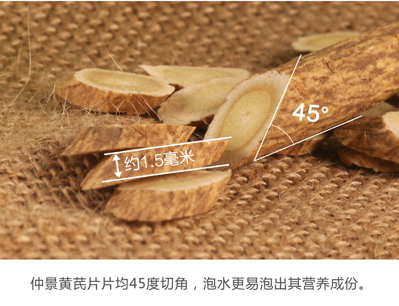 这款仲景黄芪片,产地是内蒙,非野生。金盏、银盆、菊花心,色泽鲜亮,药香浓郁;专业刀具切口,45°切厚度均匀易冲泡,药效保存完整,经多部门检验合格,品质靠谱。