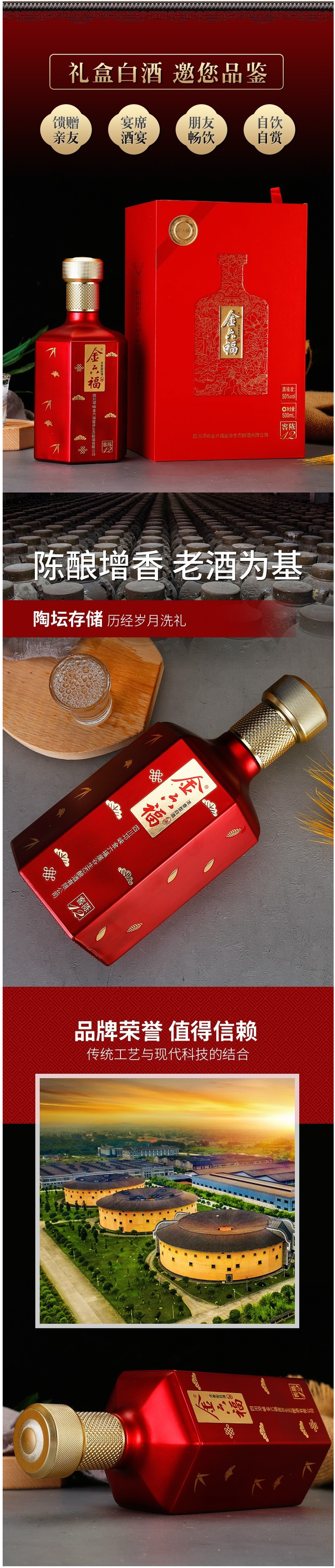 金六福窖陈12是四川邛崃金六福崖谷生态酿酒有限公司出品的一款中端浓香型白酒。采用富钾纱滤矿泉水,高粱、小麦、大米、糯米、玉米、五粮纯粮酿造,陶坛存储历经岁月洗礼,陈酿増香、老酒为基、口感醇厚丰满,低而不淡、较柔和顺口。红色磨砂瓶身六变形立体外观,包装和酒瓶都比较喜庆,非常适合过节时招待客人。