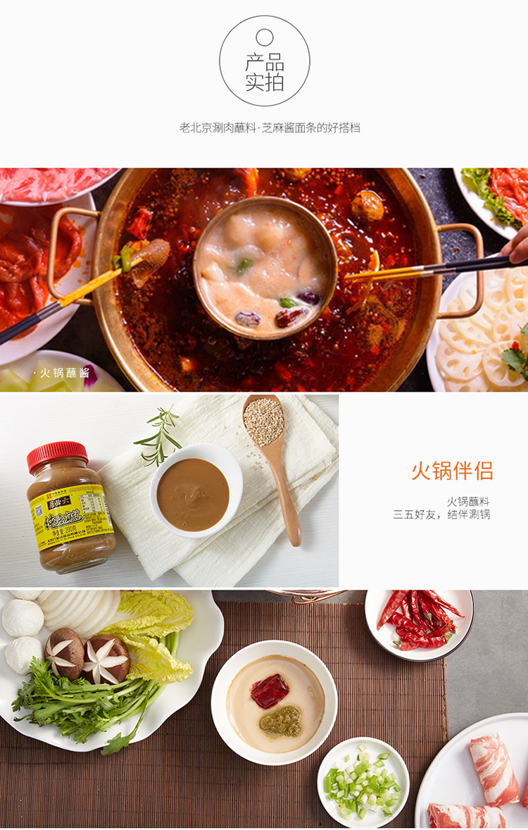 中华老字号品牌,精选白芝麻,采用传统小磨工艺和国际先进超细碎技术,成口色泽清澈,持地细腻,香味浓郁,醇厚之久,适用于火锅蘸酱、馒头、面包、涂抹和凉拌菜调料。