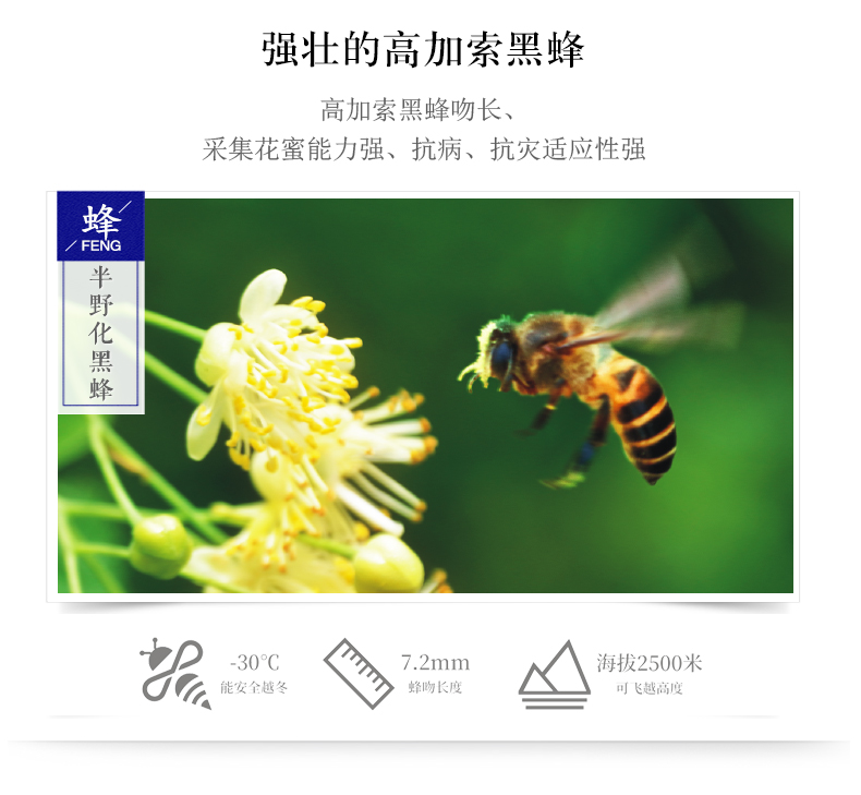 本地的强壮高加索黑蜂,采集花蜜能力强、抗病、抗灾适应性强;成品蜂蜜,散似甘露、凝如割脂,入口如棉傻般甘甜软糯,规格是500g。