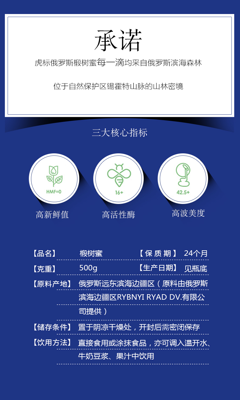 这款虎标 俄罗斯进口 锡霍特椴树雪蜜,具有高新鲜值、高活性酶、高波美度的优点,蜜源来自俄罗斯自然保护区锡霍特山脉的滨海深林,那里人烟稀少人口密度低污染少,所产的蜂蜜自然纯粹,无添加。
