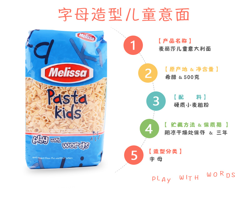 这款麦丽莎意大利面是专为儿童设计,把面条做成卡通造型,希腊原装进口,以杜兰小麦为原料,这个品种属于硬质小麦,具有高密度、高蛋白质、高筋度等特点,做成的意大利面呈金黄色,耐煮、面质软弹,口感劲道爽滑。