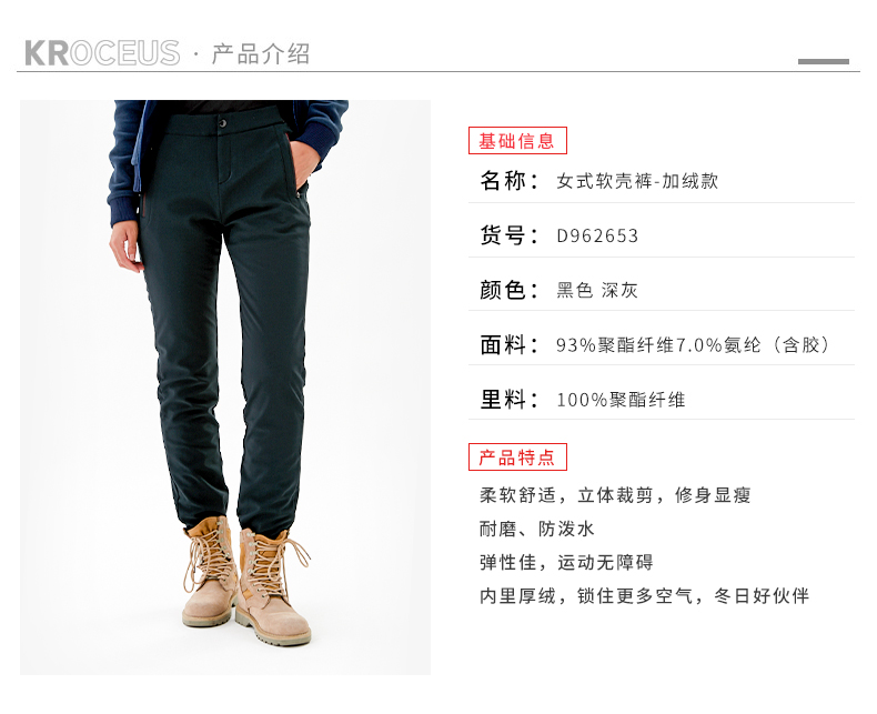 这款地球科学家软壳冲锋裤,面料上,采用92.8%聚酯+7.2%弹性氨纶,摸起来的手感柔软舒适不是很硬,带有弹力,上身不紧不勒不会影响活动性;同时拥有耐磨防风防泼水功能,面料厚度适中,四季都可穿。
