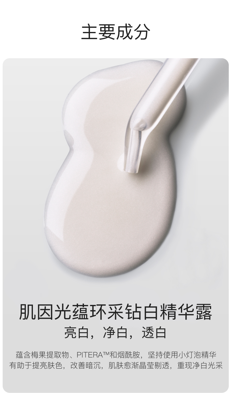 这款精华含最新抑制色斑配方Spot Resist Complex,可预防斑点形成,对于斑点预防比淡化既有斑点更重要。同时含有发光海藻萃取Lumina Kelp Extract可抑制黑色素生成,减少皮肤内外色斑。
