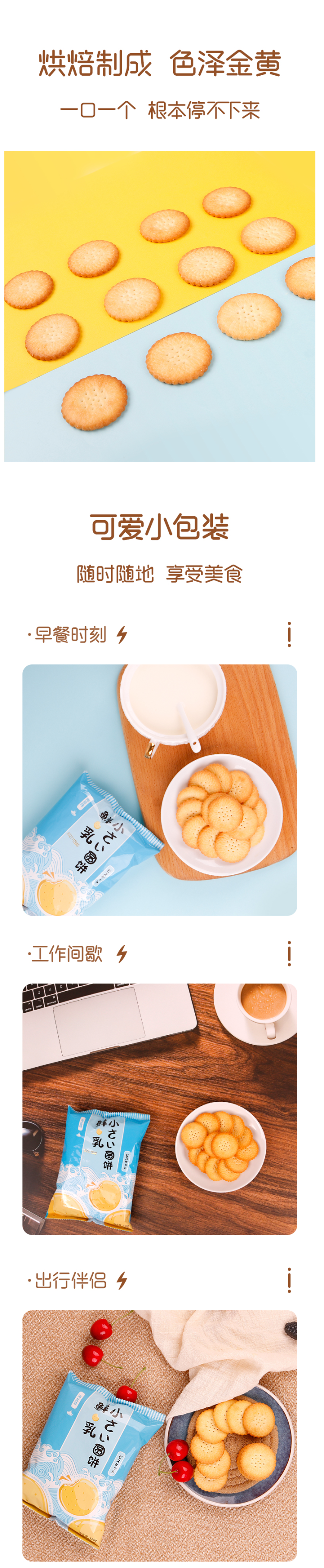 这款优佳日式鲜乳小圆饼干,使用北纬40°的黄金奶源的鲜奶和面,不加一滴水,烘焙制成,色泽金黄,伴随有浓郁奶香,口感酥脆。
